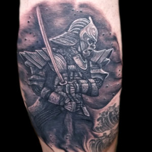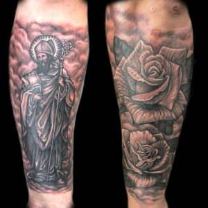 While getting tattooed, I had the opportunity and privilege to watch and learn from many Tattoo Artists who had different styles and ways of working, over the course of my extensive sittings. After being around tattoo parlors, and artist so much and knowing I could draw since birth, I decided to dedicate my life to learn this art form that it was becoming so in part my life. I went on Ebay and bought a full tattoo kit, and started tattooing and teaching myself