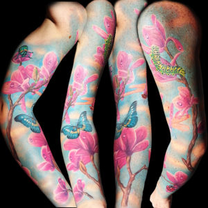 By that time living in South Florida, working in the bar/restaurant industry, would spend most days off spending most of my checks on tattoos, had over 180 hours of tattoo work done on my body , more than 60% of my skin covered throughout many cities by many different tattoo artist.