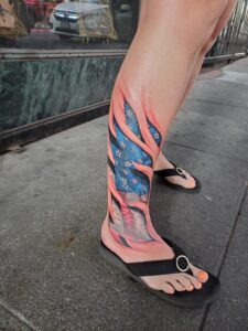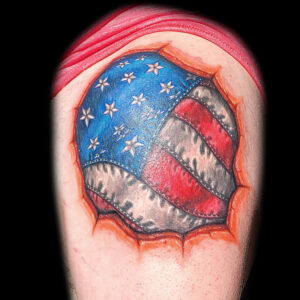 Some of Brian Martinez realistic 3d flag tattoos, done at Masterpiece Tattoo in San Francisco bay area California. Most of this flag tattoos are American flags tattoos, also you can see flags from another countries like Uruguayan flag tattoo, and Argentinian flag tattoo, etc. You can appreciate the 3d effect on most of this tattoos and the realistic style, that make the flags wavy or give texture to them